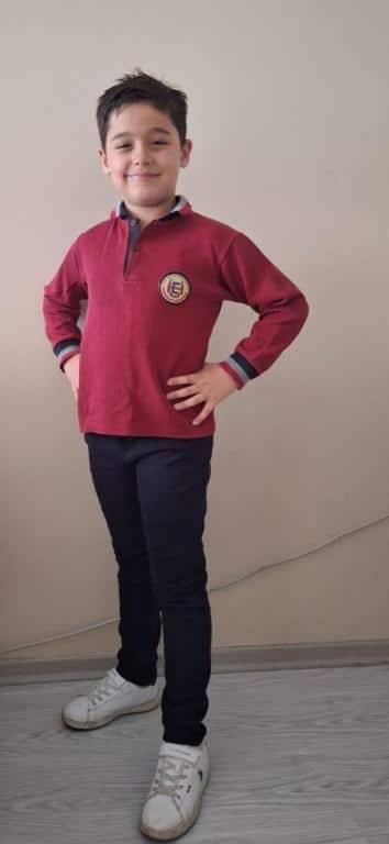 -Doğal ve sağlıklı kumaşlardan (pamuklu) Kış için; polo yaka, uzun kollu, okul armalı tişört,